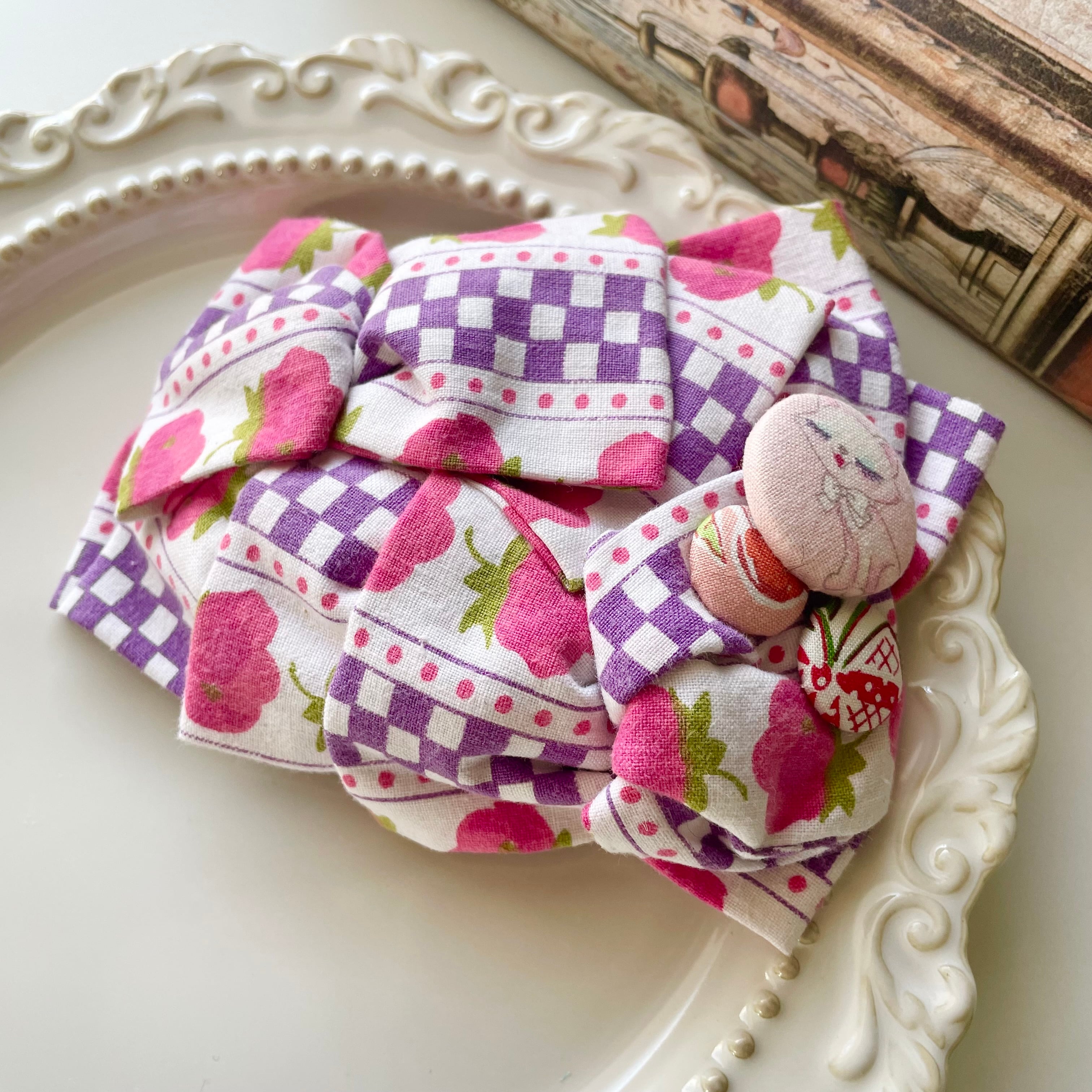 素材:古布、ボタン、フェルト、金属コーム