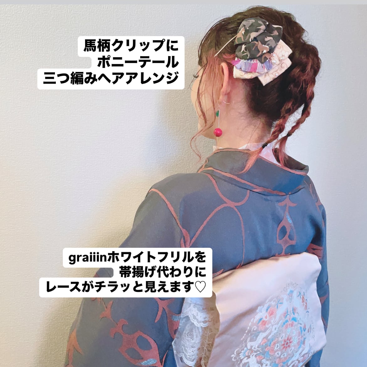 2026年の干支にちなんだ、馬柄クリップの髪飾り個数限定価格で登場!小ぶりな馬柄布に刺繍リボンを組み合わせ、フリンジとレースで飾るポニーテール。がっしりしたクリップタイプは様々なシーンでの活用が可能で、髪や帯飾りに添えることで和装はもちろん、普段使いカジュアルなスタイルにもアレンジできます。