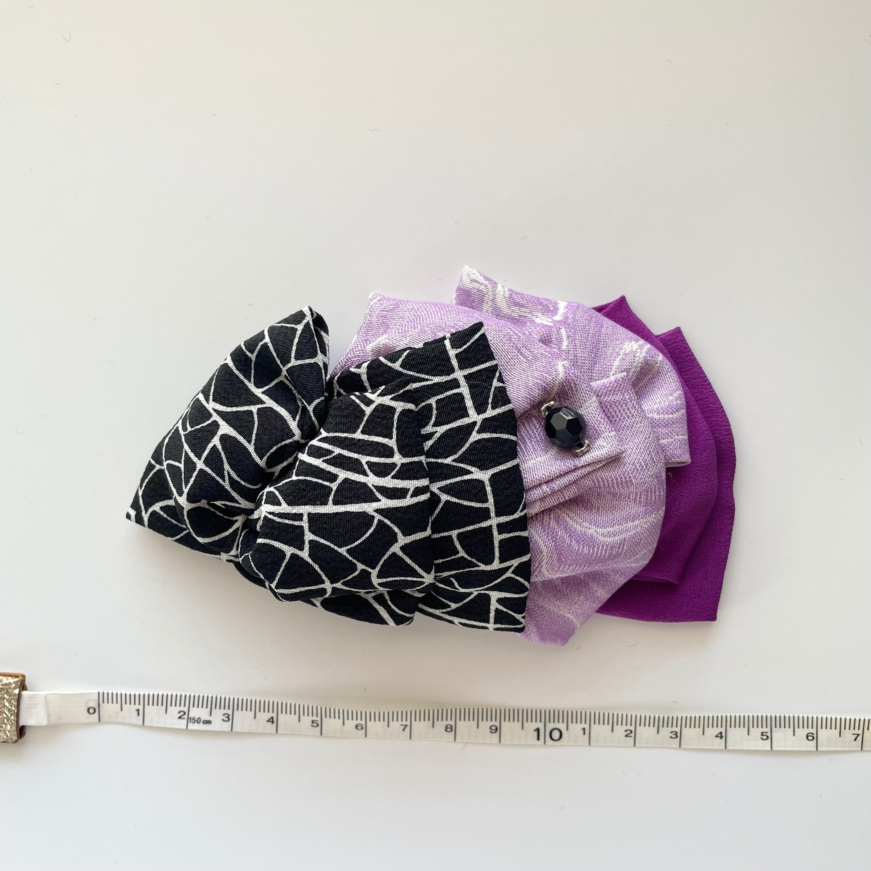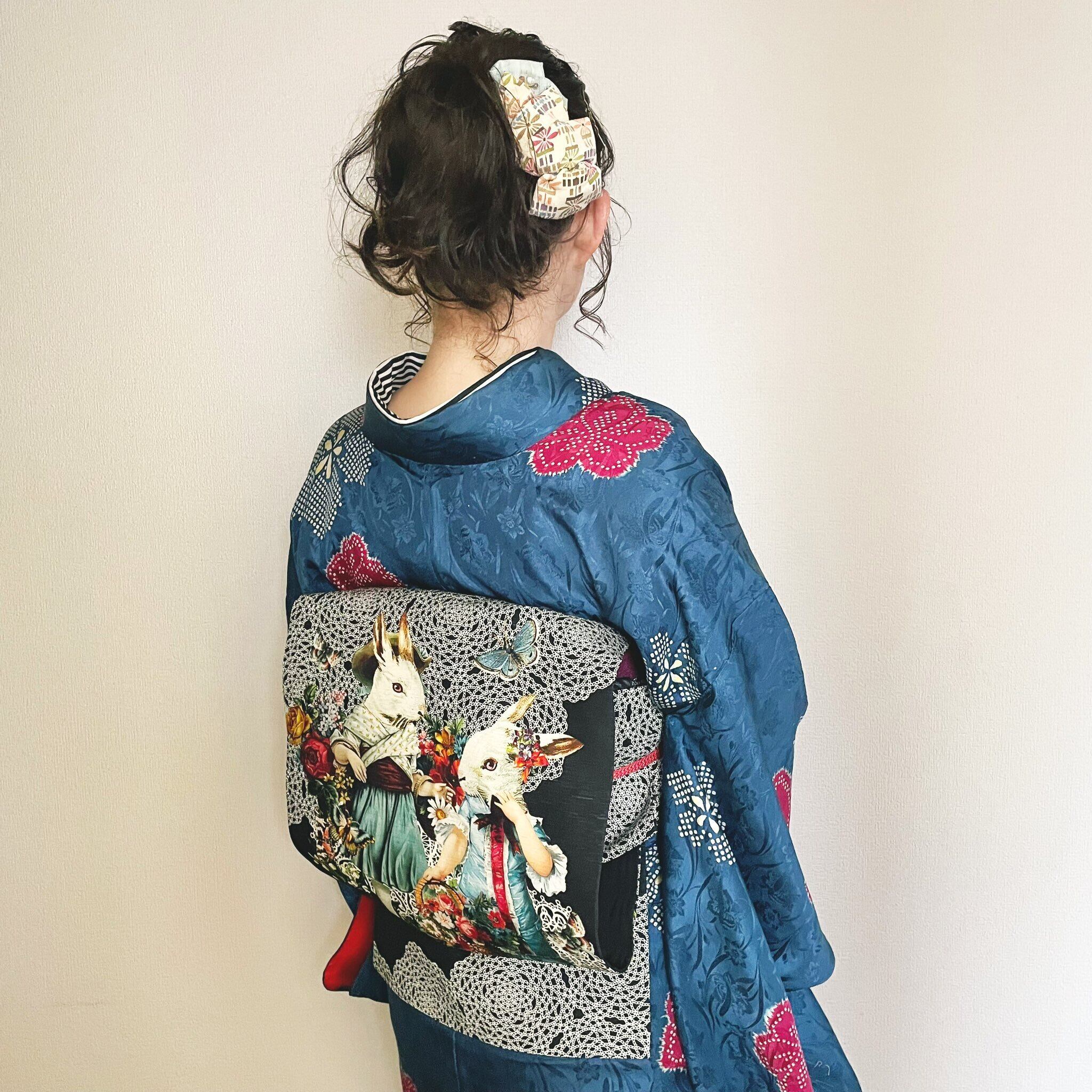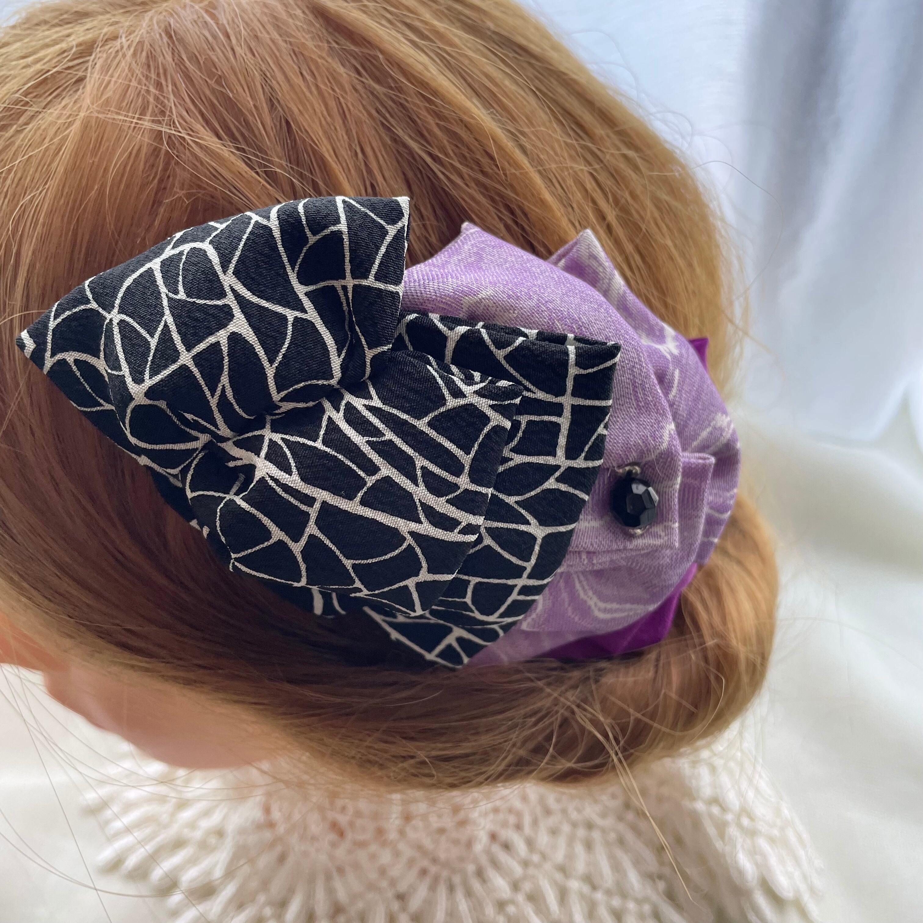 ひとつひとつ繋ぎ合わせたボーンのミニ髪飾り、古布は柄の出方で雰囲気変わったり、その時々の一点物。着物のお出かけや、少しだけ和を取り入れたい時にミニサイズがちょうど良く馴染みます。お手持ちの髪飾りや他のアクセサリーと組み合わせてみたり、一つに束ねたヘアスタイルからショートボブヘアにも付け方は簡単です。クリップ仕様なので帯飾りにもできます。(着画はイメージです)