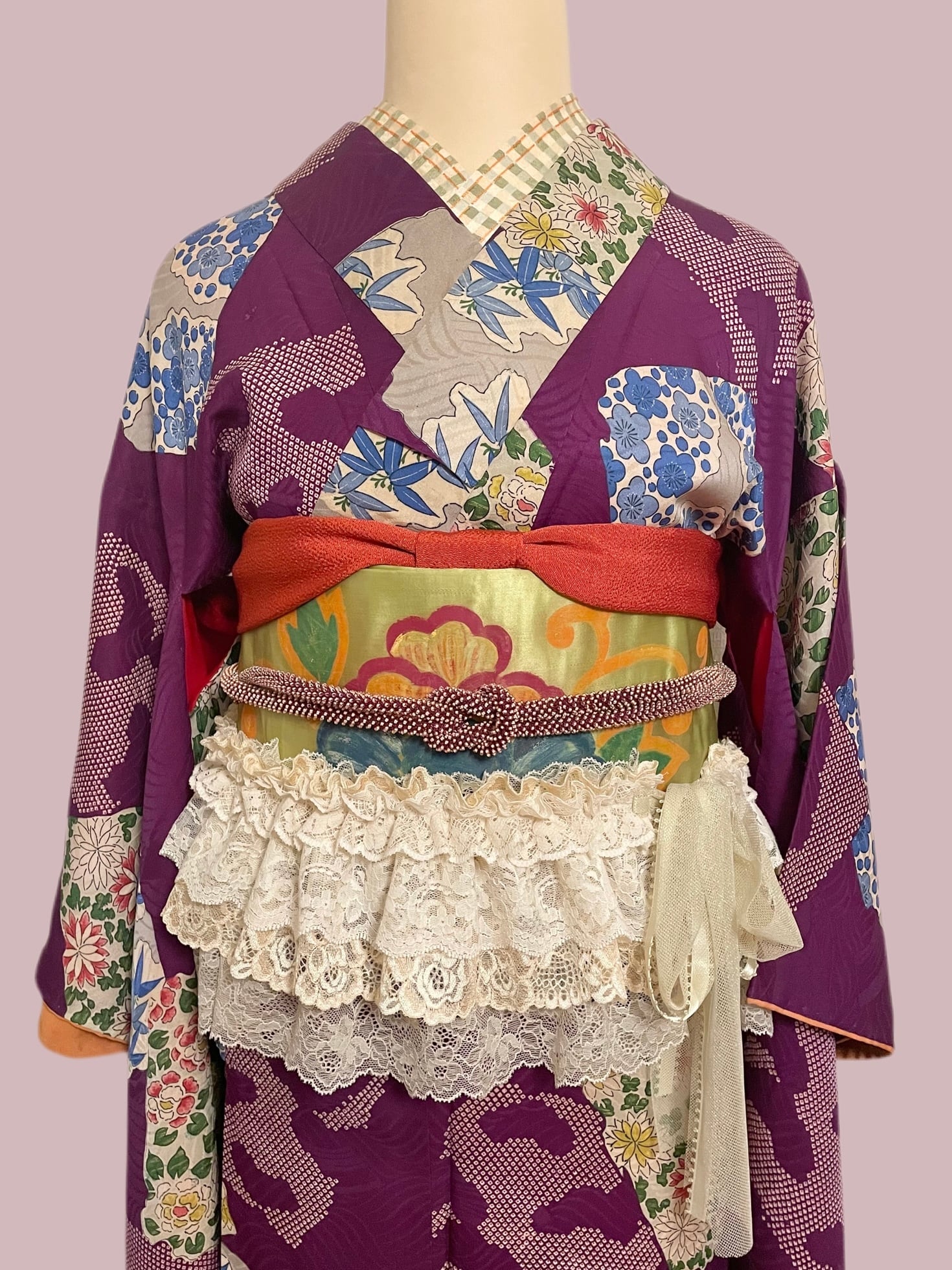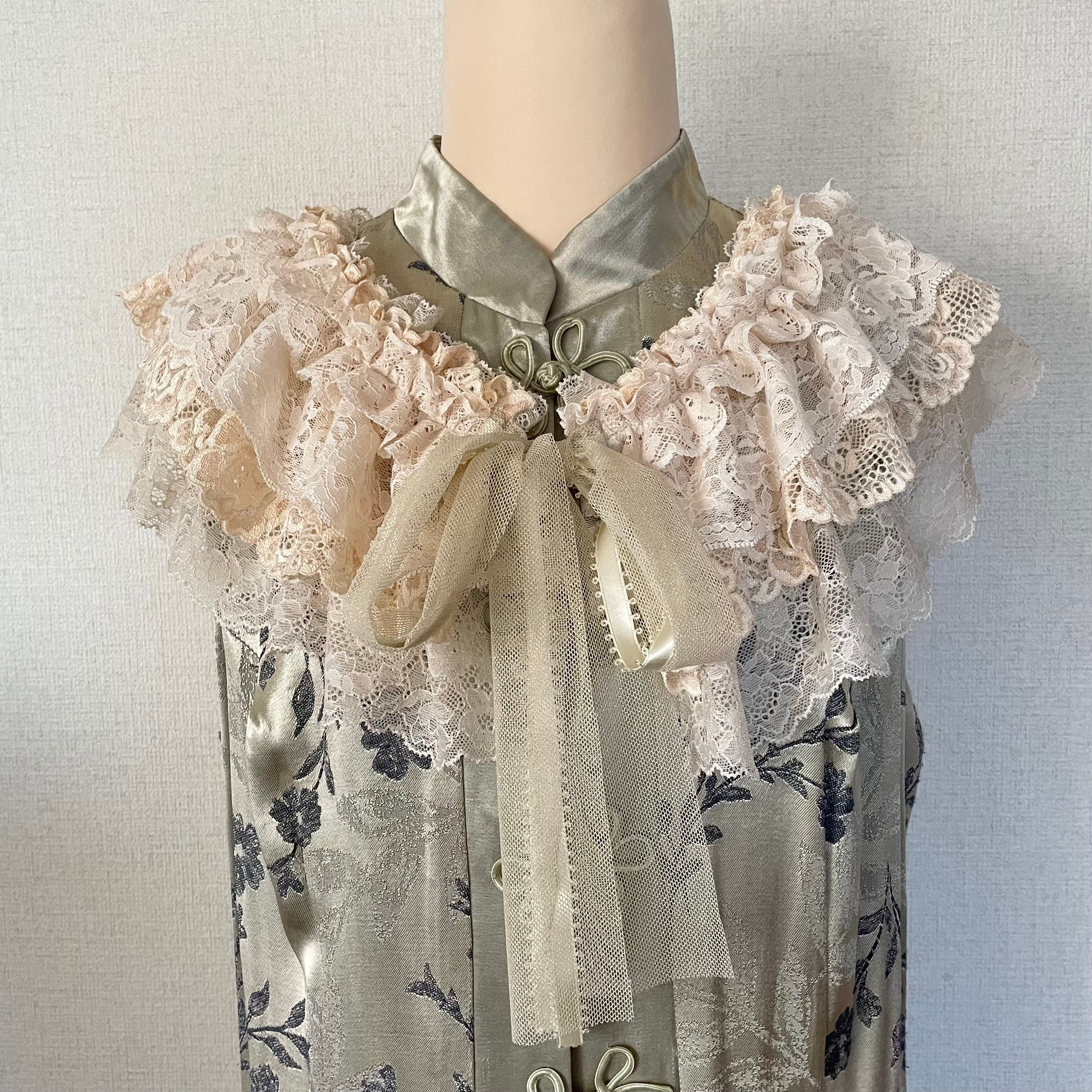 いつものスタイルに華やかなフリルをプラス!アンティーク調なレースの色合いが甘過ぎず、付け襟や腰巻きとして2wayで楽しんでいただけます。ちょっとしたパーティーや、普段着物や洋服のポイント使いにも最適で、どんなコーディネートにもレースが魅力を引き立てます。