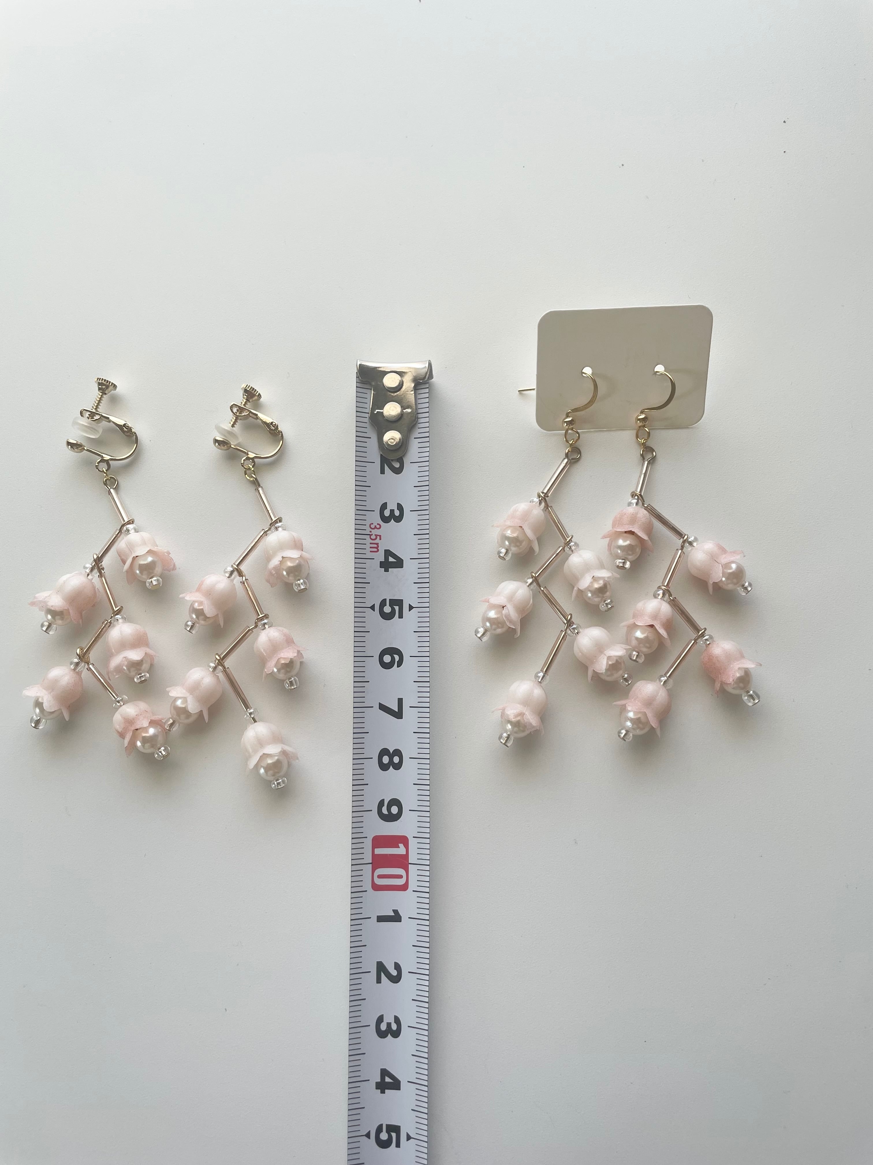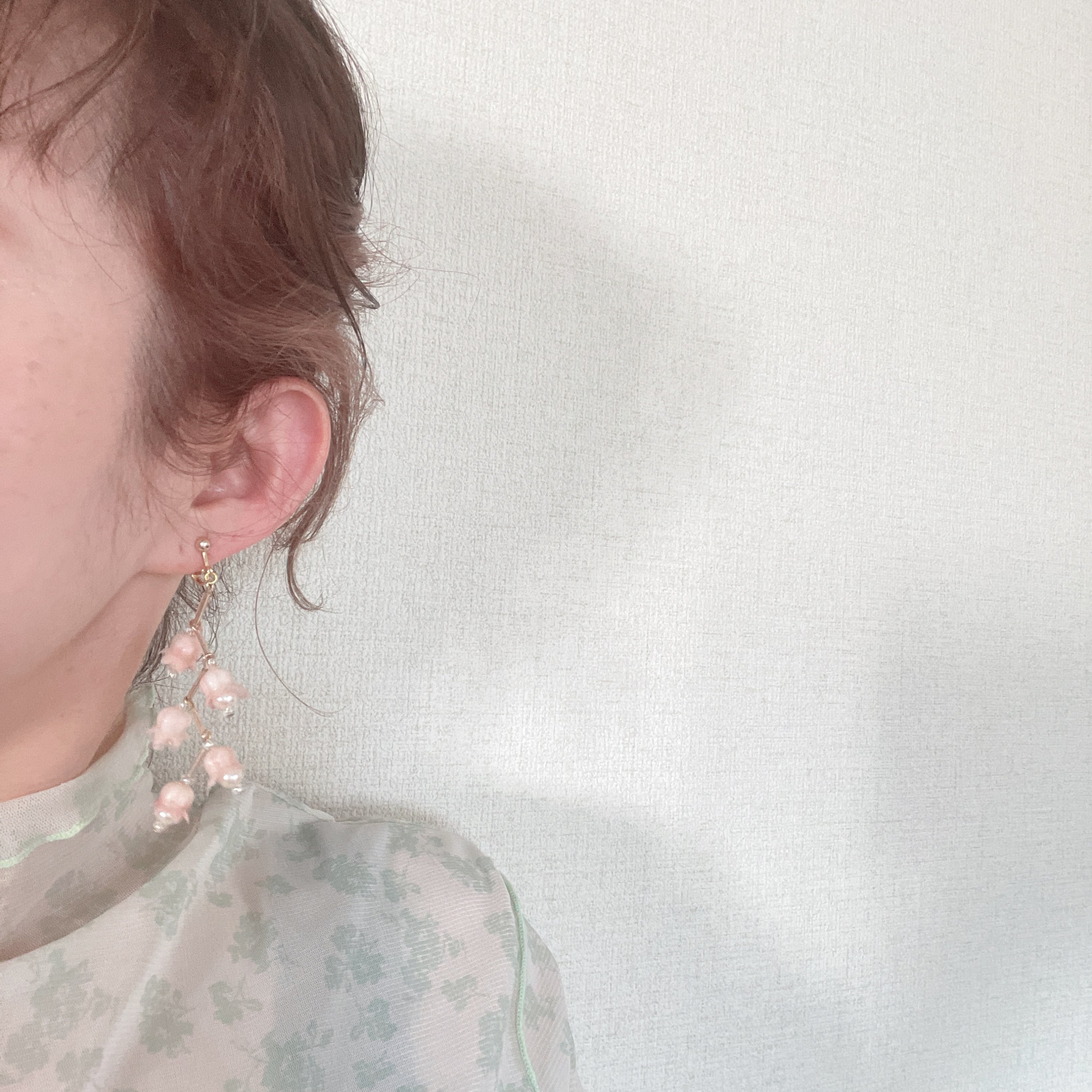 ゆらゆら動くジグザグデザインずずらんのモチーフがあしらわれたイヤリングとピアスは、カジュアルからフォーマルまで、さまざまなシーンで活躍します。軽やかで着け心地も良く、長時間の着用でも快適です。